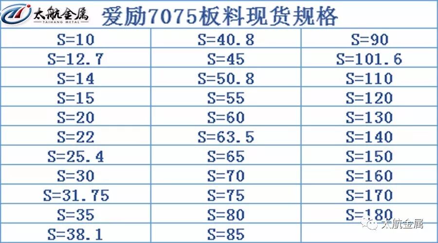 7075品种分为板材、厚板、棒、型、排、线材、轧制或冷加工棒材、冷加工线材。状态有O状态、T6状态、T651状态、T6511状态、T73状态、T7351状态、T7651状态、T76511状态、H13状态。7075典型用途航天航空工业、吹塑(瓶)模、超声波塑焊模具、高儿夫球头、鞋模、纸塑模、发泡成型模、脱腊模、范本、夹具、机械设备、模具加工等其他抗蚀的高应力结构件。
