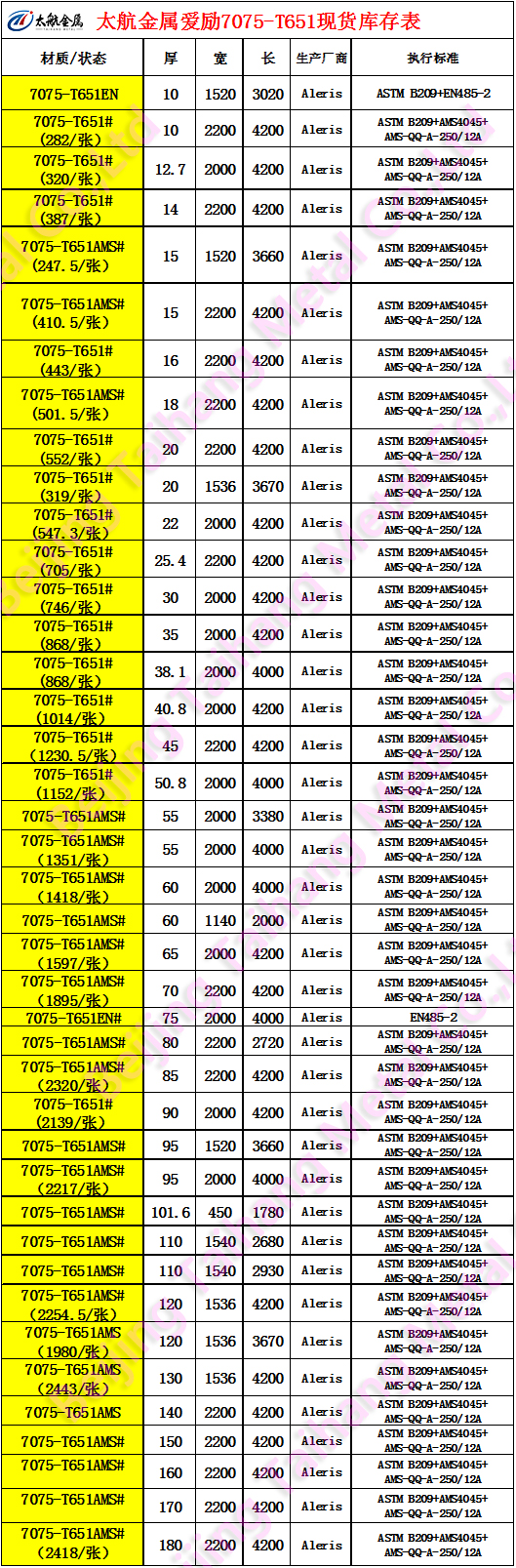 二、太航金属Aleris7075-T651铝板产品特点: